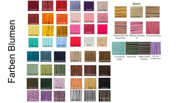 Bitte wähle bis zu 3 Paracord-Farben für die Blumen